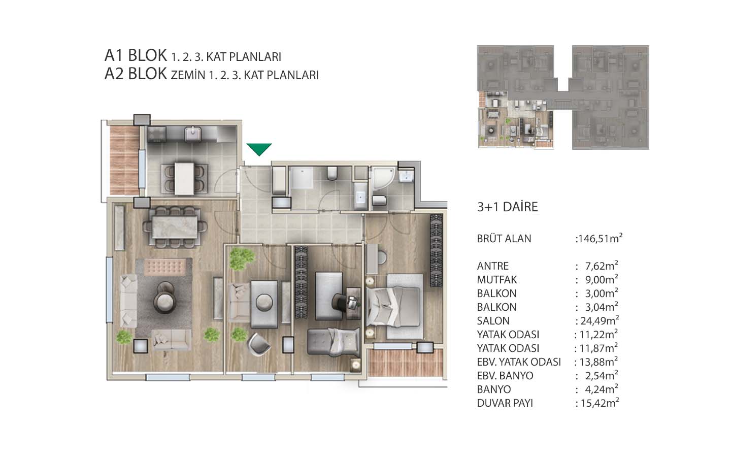 يقع المشروع في بلدية بيلك دوزو في الجزء الاوربي من إسطنبول ,تم بناء المشروع على مساحة تقدر ب 4 ألف متر مربع .المشروع عبارة عن 4 بلوكات سكنيات .بمجموع شقق يقدر ب 84 شقة .مع وجود مساحات متنوعة مع وجود بلكونات في الشقق. و بعض الشقق تحتوي على تراسات .